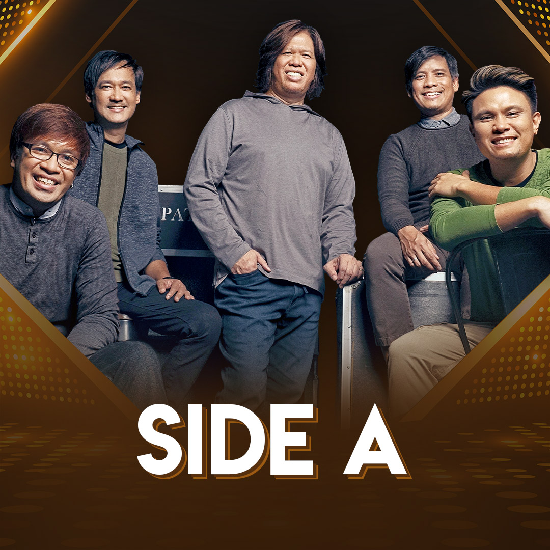 Side A has been enthralling live audiences with their impeccable performances and hits like "Forevermore," "Tell Me," "Hold On," "Set You Free," "Ang Aking Awitin," "Tuloy Pa Rin," and more since the late '80s. Enjoy their music, and let it take you to the bright side!