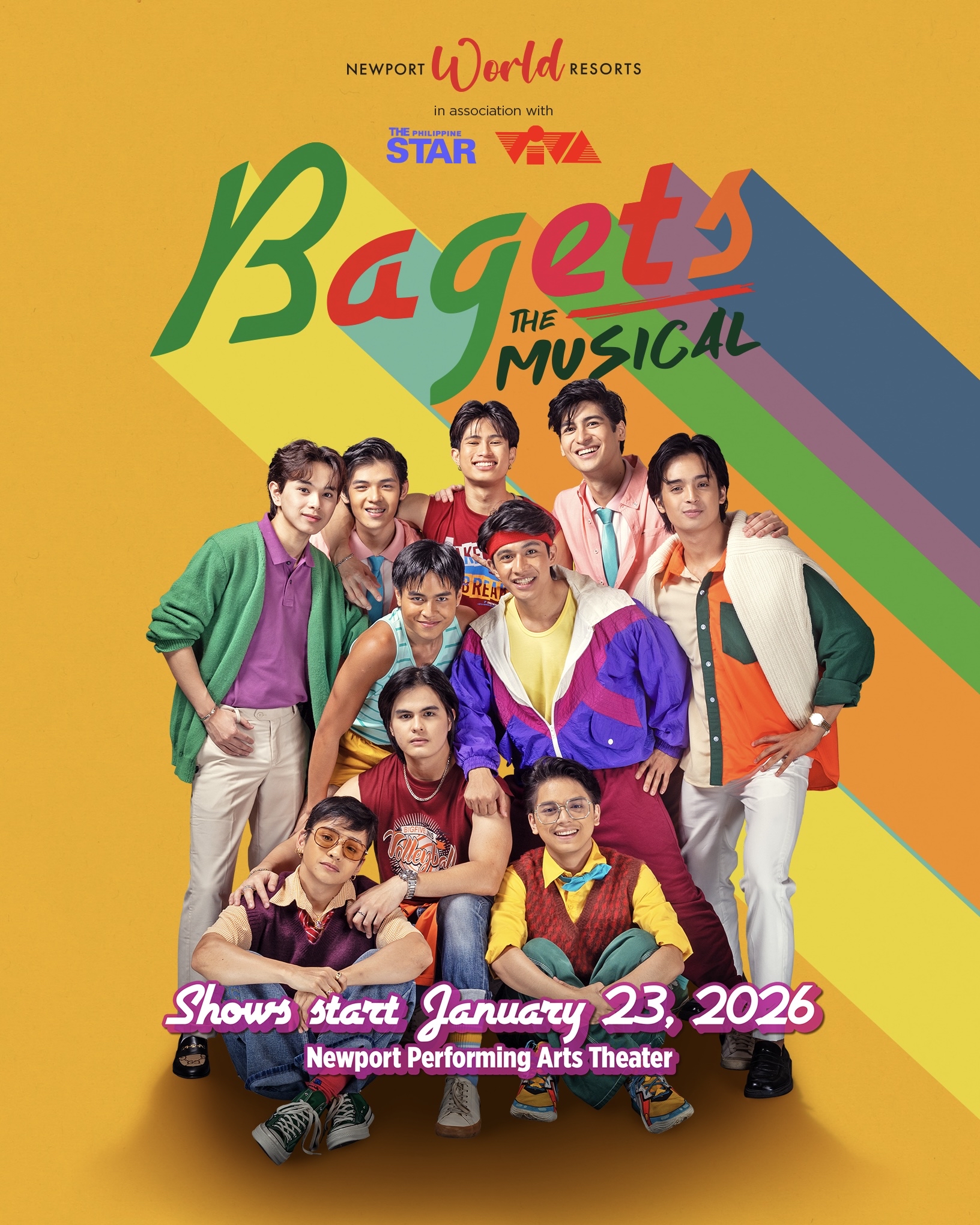 The iconic ’80s barkada makes its way to the stage with Bagets The Musical, opening the year at the Newport Performing Arts Theater. The show reimagines the 1984 coming-of-age film through music and live performance. With a younger cast taking on the familiar story, the production leans into themes of friendship, first love, and growing pains—now filtered through theater spectacle and OPM-driven nostalgia.