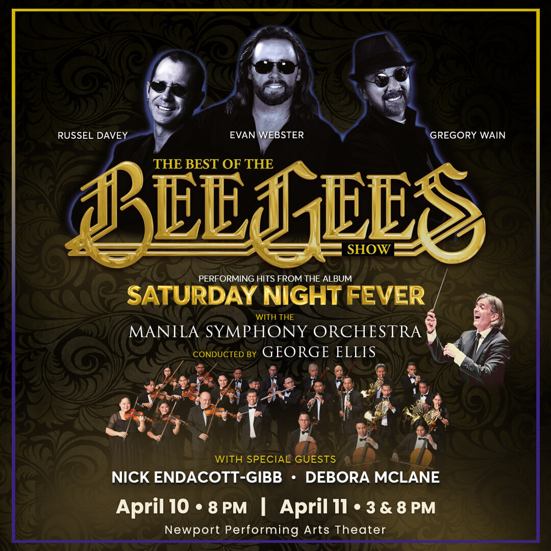 Fans can relive Bee Gees fever as The Best of The Bee Gees performs on April 10 and 11 at the Newport Performing Arts Theater, accompanied by the Manila Symphony Orchestra under conductor George Ellis. The concert honors the group’s iconic 1979 album Greatest with orchestrated renditions of disco anthems and classic ballads.
